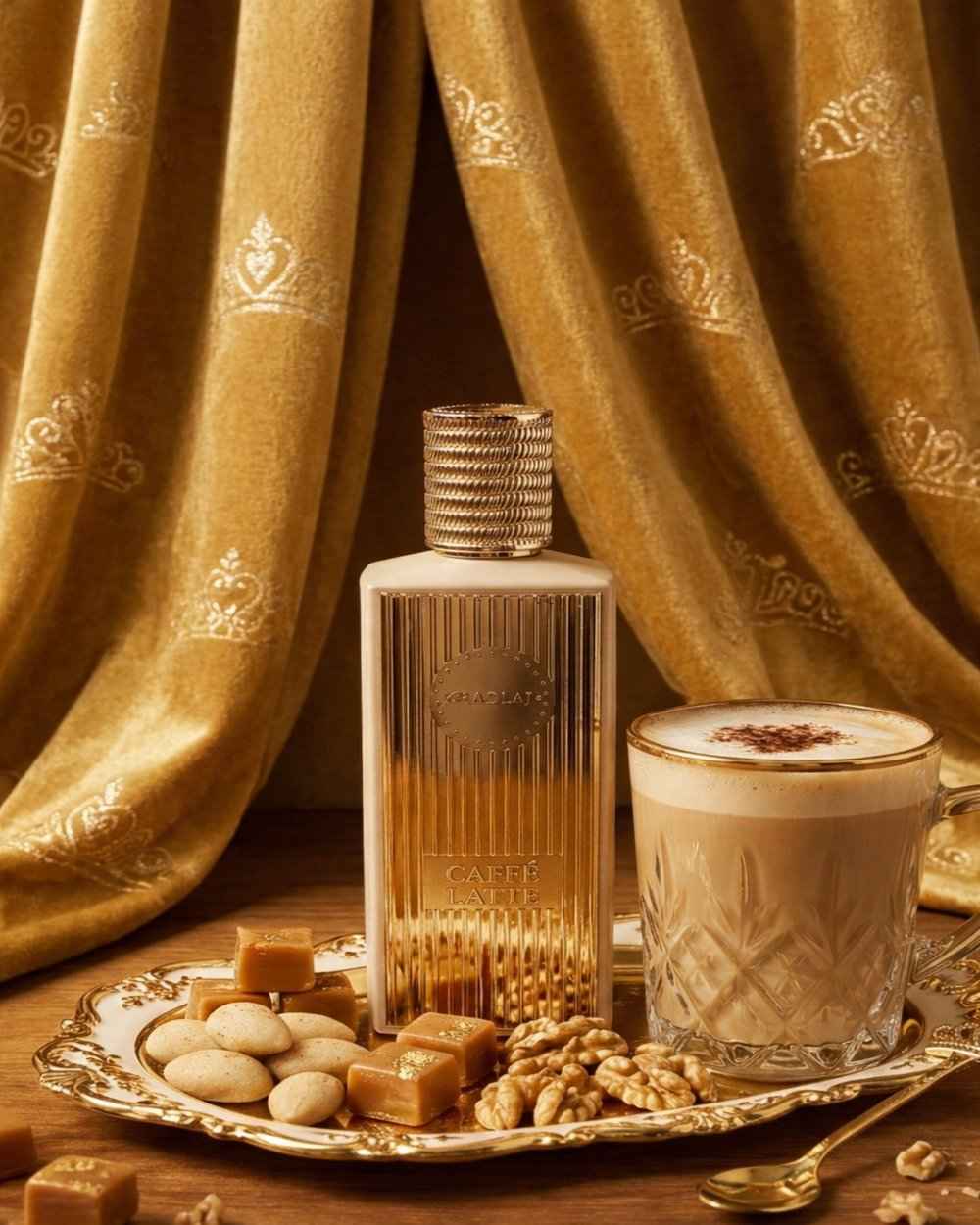 egy gourmand karakterű női arab parfüm, amely elérhető arab parfüm illatminta (5–10 ml dekant) formában is. A Khadlaj Caffe Latte a frissen főzött kávé, a krémes tej és a karamell meleg harmóniájára épül, miközben a pézsma és a diós tónus tartós, érzéki alapot biztosít.